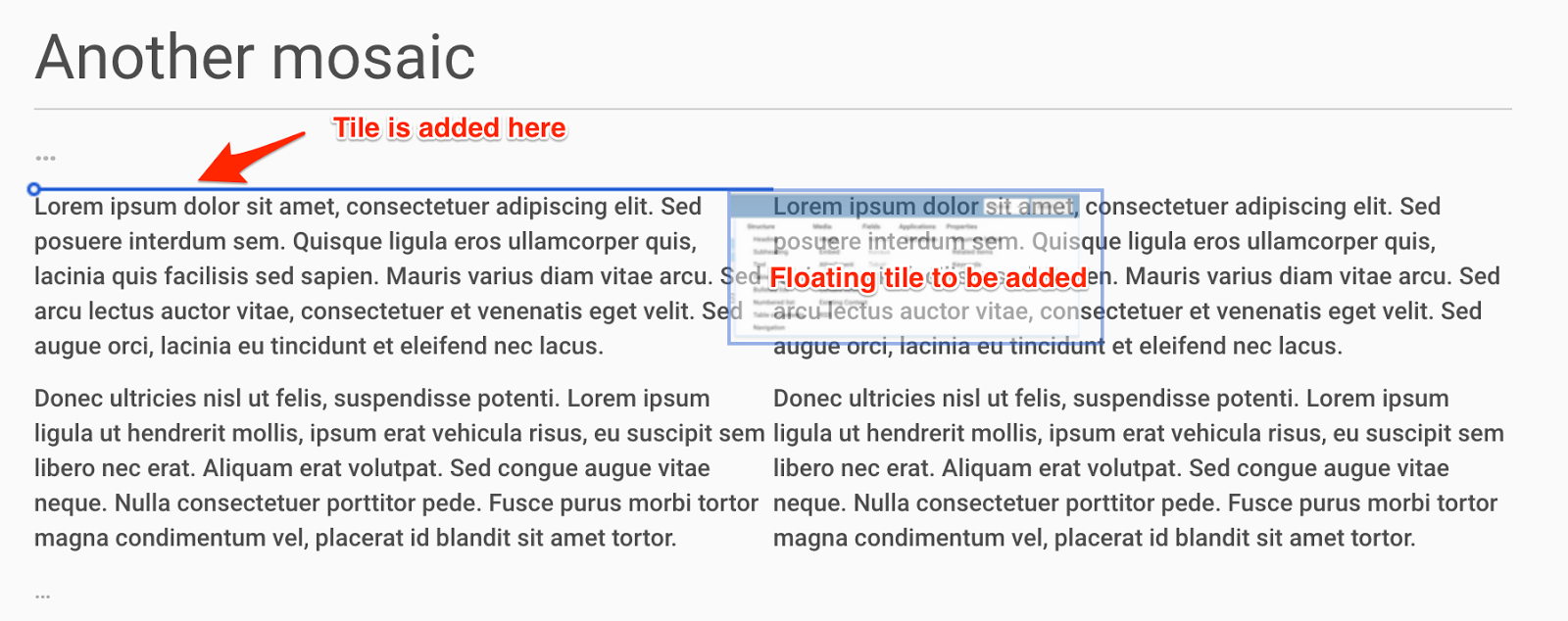 In this article I will give examples on how to create and edit flexible and responsive tile-based pages using Plone Mosaic. I'll also discuss some issues I have so far bumped into, and ponder on the possibility to use Mosaic to replace Portalview, our current tool to compose customized portals. I'll use Plone 5, the newest version of Plone CMS.